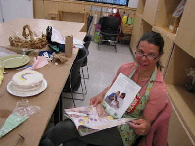 No one seemed to have the heart to cut into my cake - and as much as I go on and on about how cakes are like sand mandalas (you work on them with mindfulness and and then let them go) I couldn't bring myself to do it either. As I was leaving the Pavilion with the cake, thinking I'd bring it to my Book Club or cake class, a fellow who was having a picnic in Bolinas Park came up to admire the cake and said I should bring it to the Fairfax Theater - brilliant! I brought it to the Theater and the staff just loved it -I said they could keep it there as long as they wanted (locals can drop by and take a peek)